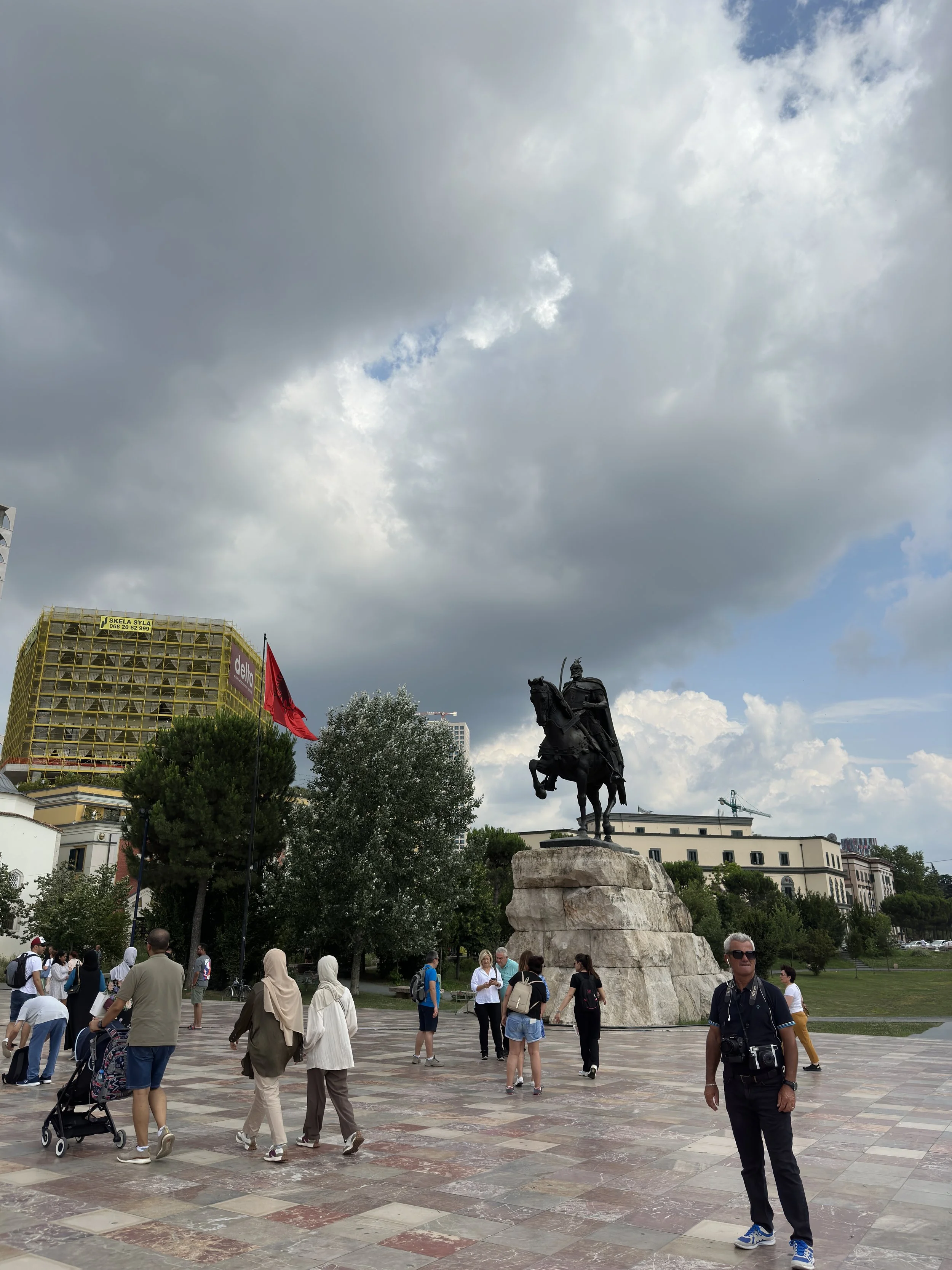 A bold bronze shape in a small green patch, marking Albania’s independence. Our stop here was brief, just enough for our guide to stitch this moment into the larger story of the city.