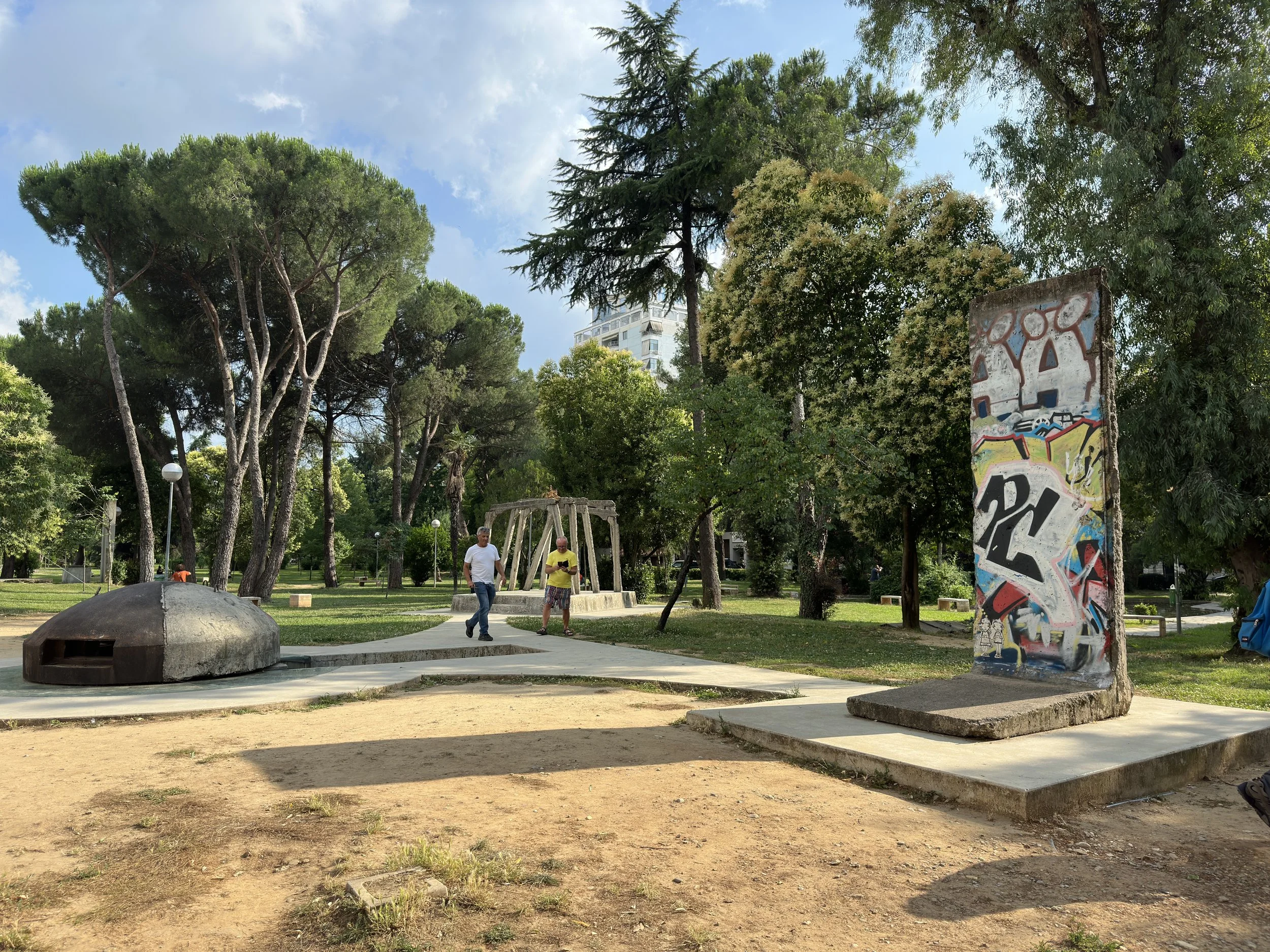 Trees. Benches. A break from Tirana’s pace. The park was quiet, a few people sipping drinks in the shade. We let our feet rest, grateful for the pause.