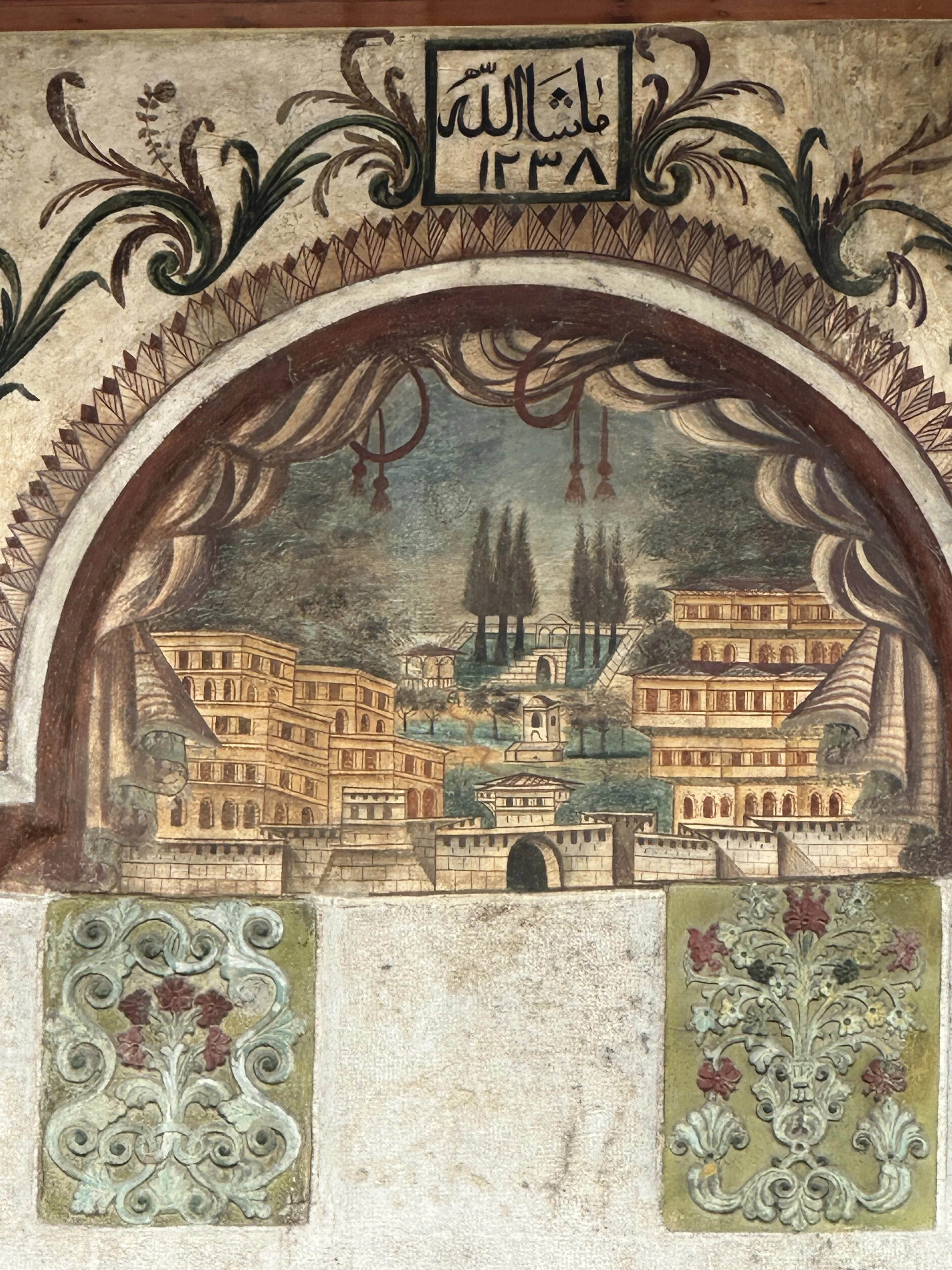 The mosque was packed. Too many people for photos, too little room for quiet. Even so, the painted details flickered between bodies, the colours soft against the pale walls. We stood at the edges, watching worshippers slip in and out, the doorway swallowing the crowd one by one.