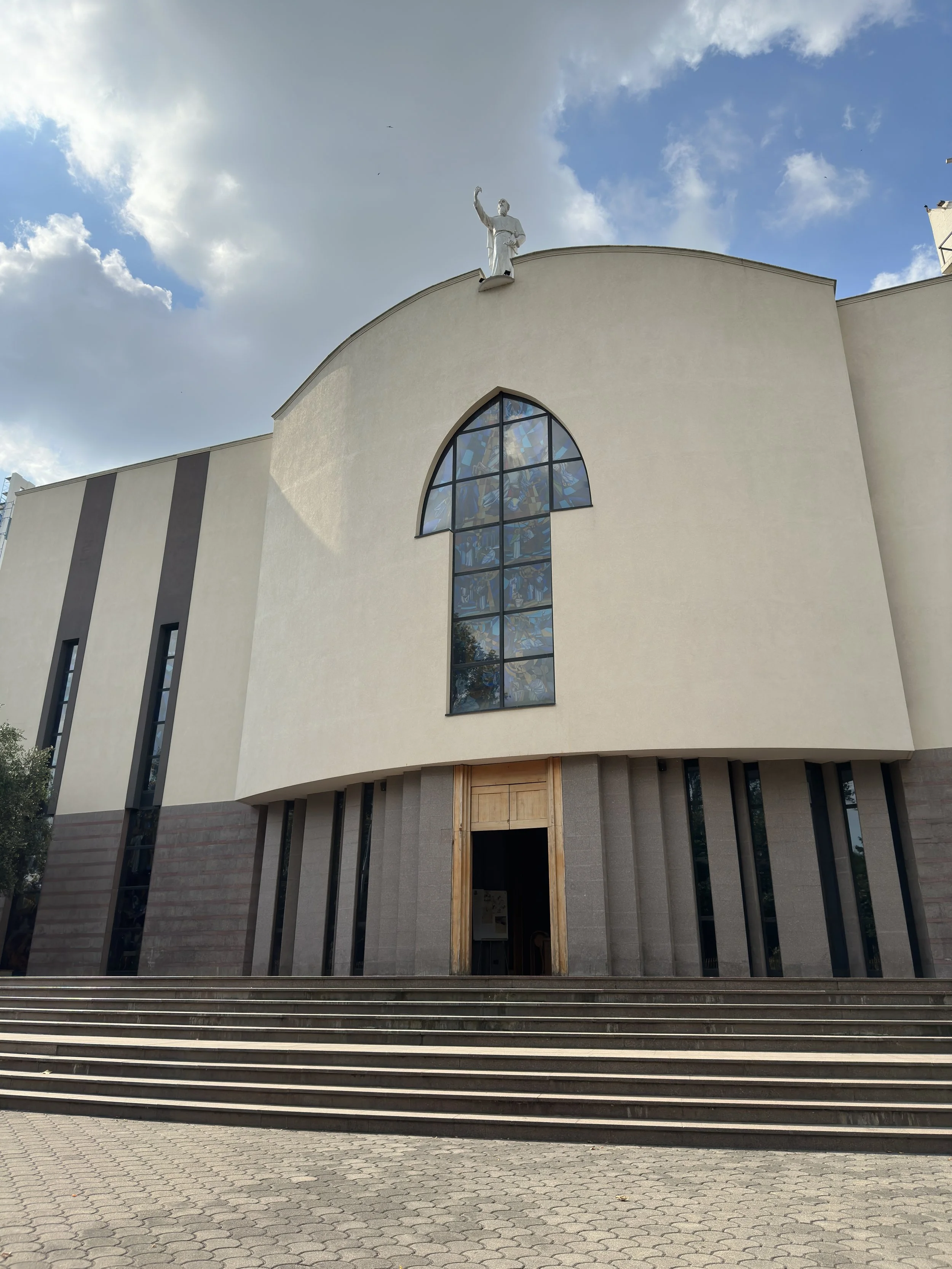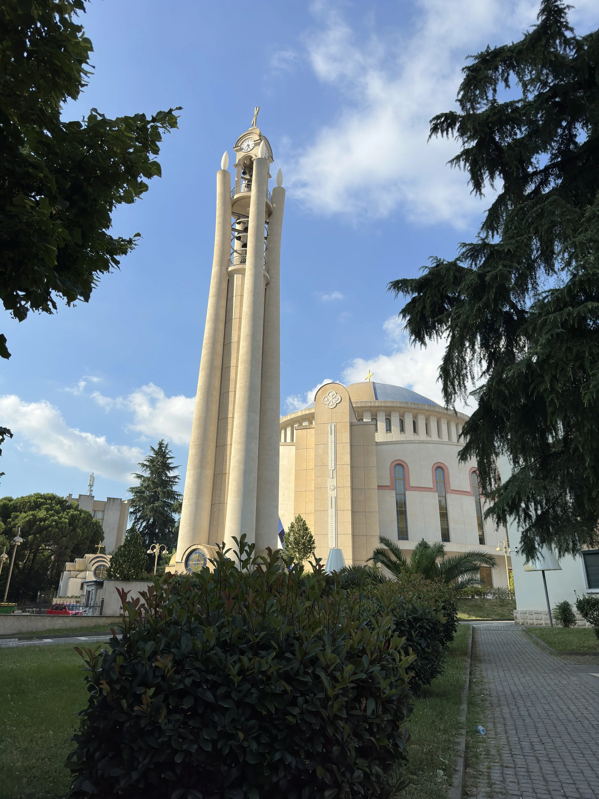 Clean lines. Modern angles. White against the sky. Saint Paul’s felt calm, almost minimalist compared to other Balkan churches. We took a short look inside, the light soft over the pews.