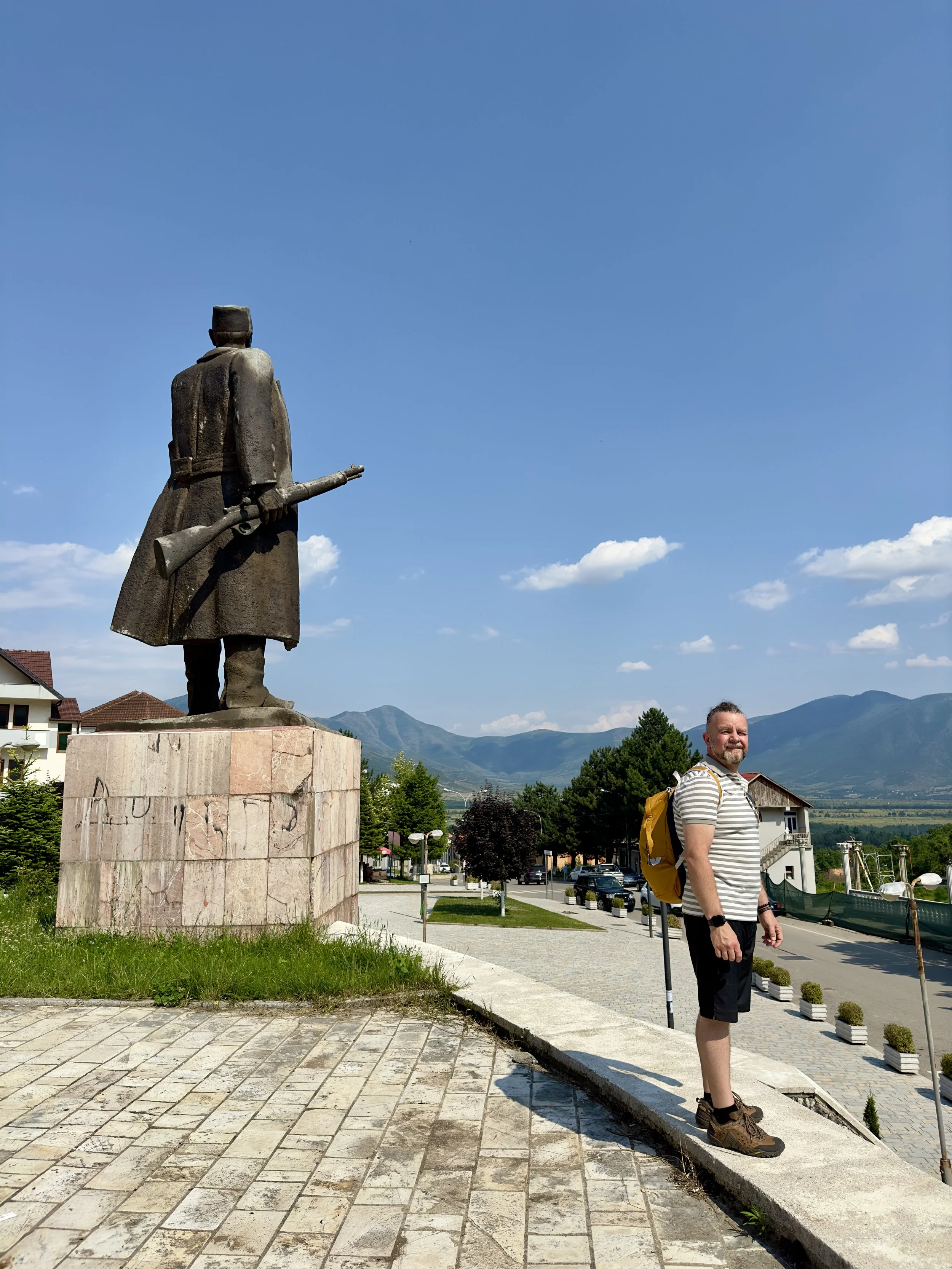 We stopped near the main square, watched over by the statue of Bajram Curri himself. He was a national hero, born in these mountains and remembered for fighting Ottoman rule and later resisting King Zog’s regime. The town carries his name, a nod to his fierce independence and tragic end. It is said that in 1925, rather than surrender, Bajram Curri took his own life in a cave near Dragobia, not far from here. His story is part of the rugged mythology of northern Albania, proud, stubborn, and bound to the mountains.