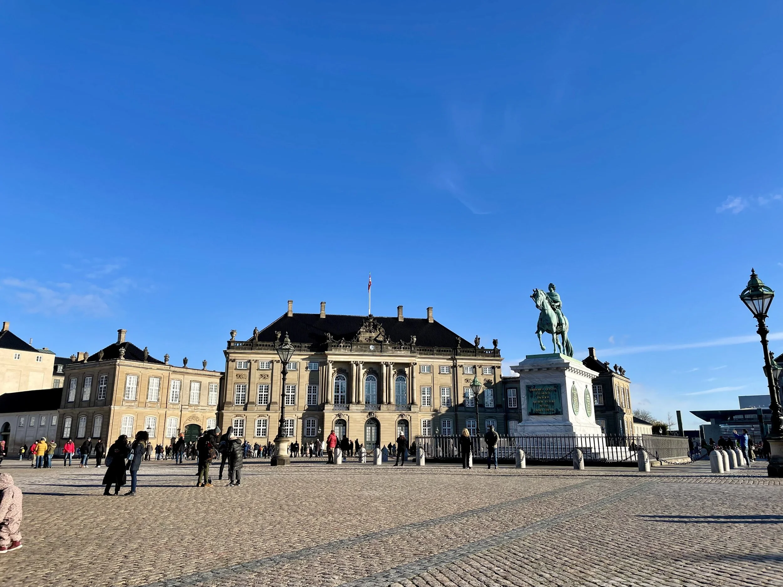 Amalienborg is the royal family’s winter residence. The square is flanked by four identical palaces, and just as we arrived, we caught the changing of the guards. Watching the soldiers march in their crisp uniforms and tall bearskin hats added a real sense of ceremony and history to the visit. It was striking to see such tradition alive in the middle of a cold Copenhagen morning, and we paused for a few photos, taking in the grandeur of the square.