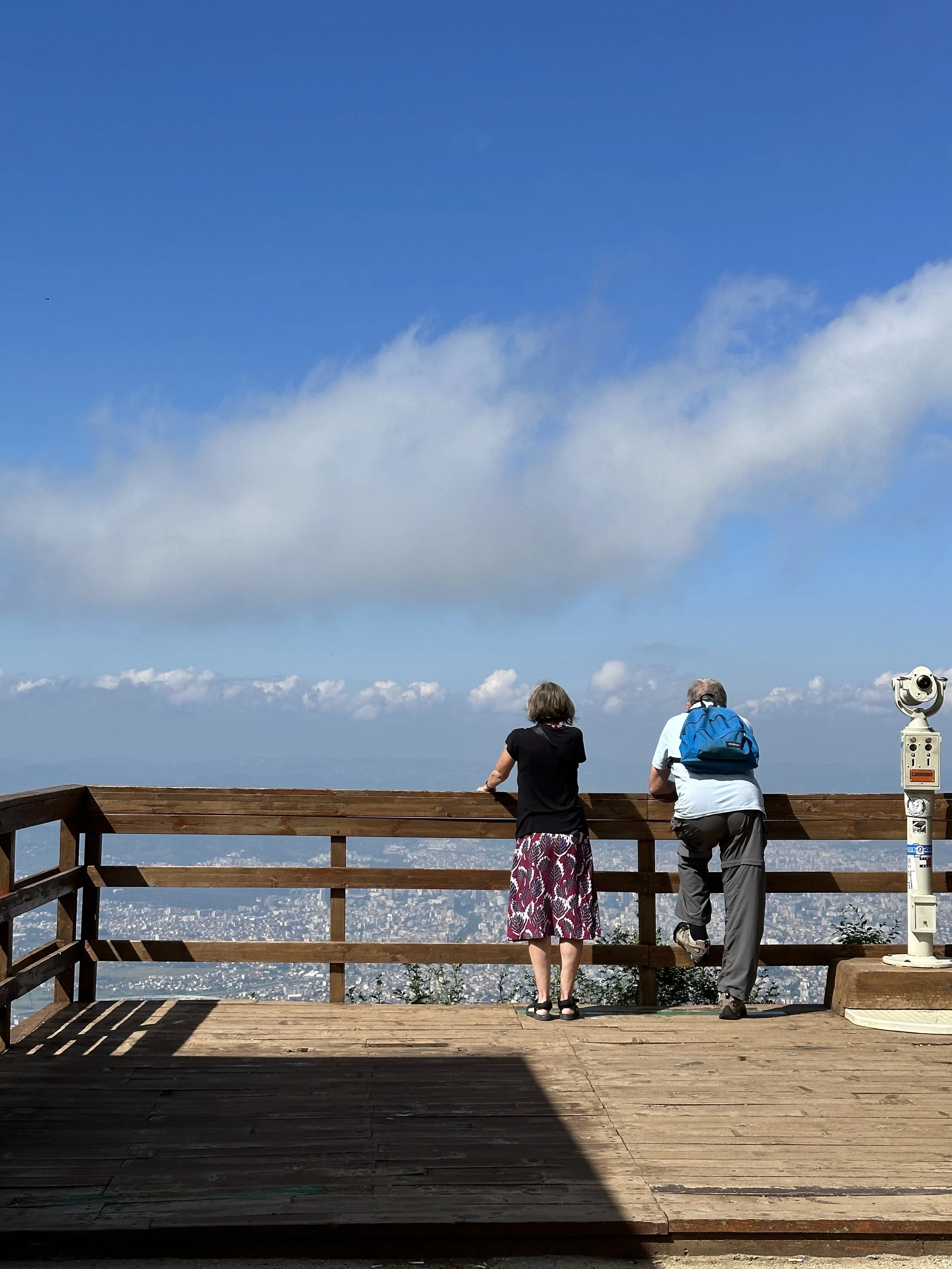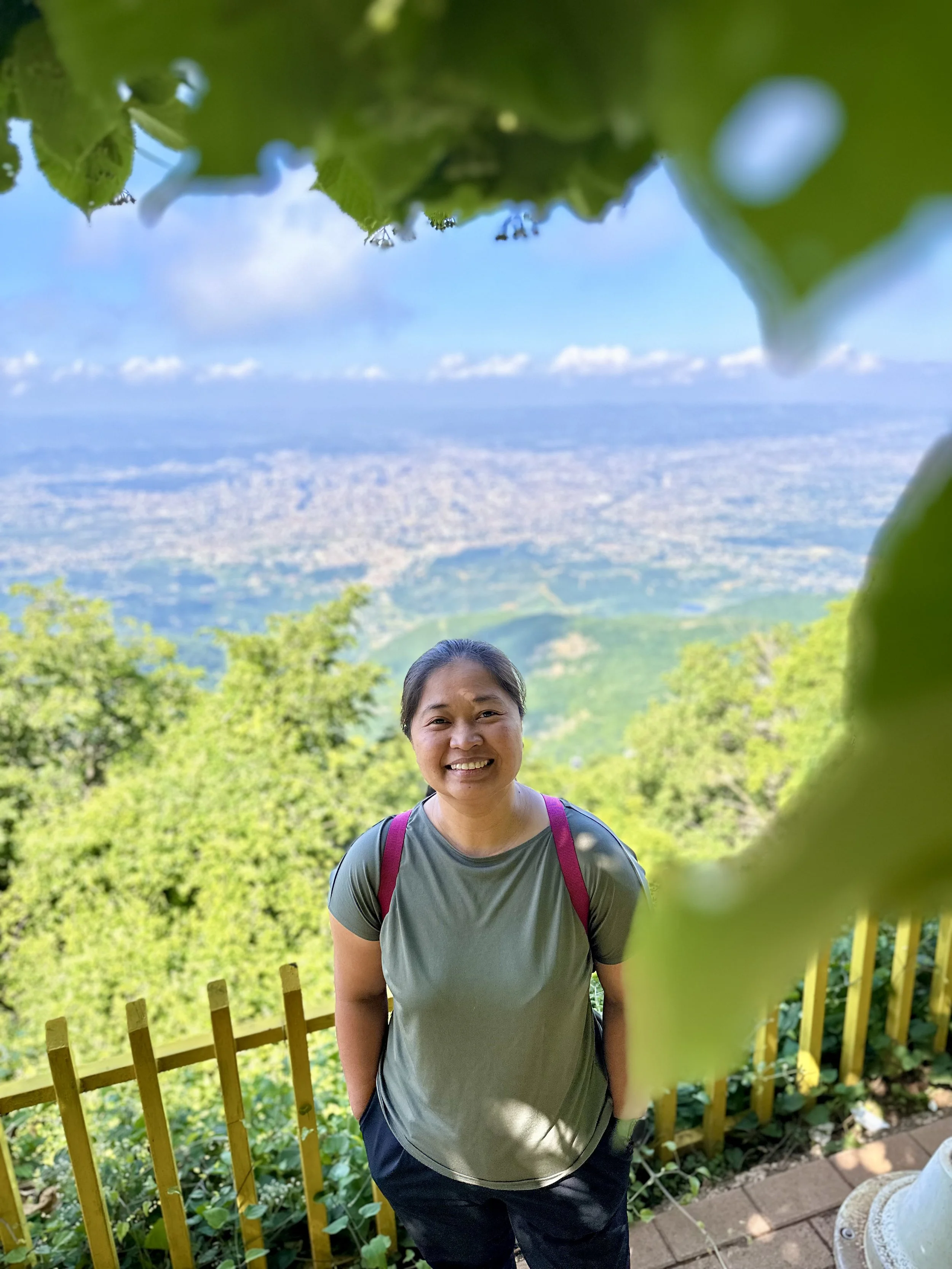 At the top I expected a single lookout, a quick walk, nothing more. Instead the ridge opened wide. Paths slipped into the trees. A café leaned over the valley with a terrace that pulled people in. Families drifted through the small adventure park and stood at the viewing platforms while the light shifted across the hills. A hotel sat just behind the main terrace, quiet and tucked in, the kind of place you only notice when you are already up there. It added to the sense that the mountain is not only a day trip but a space where people actually stay the night to wake up above the city.