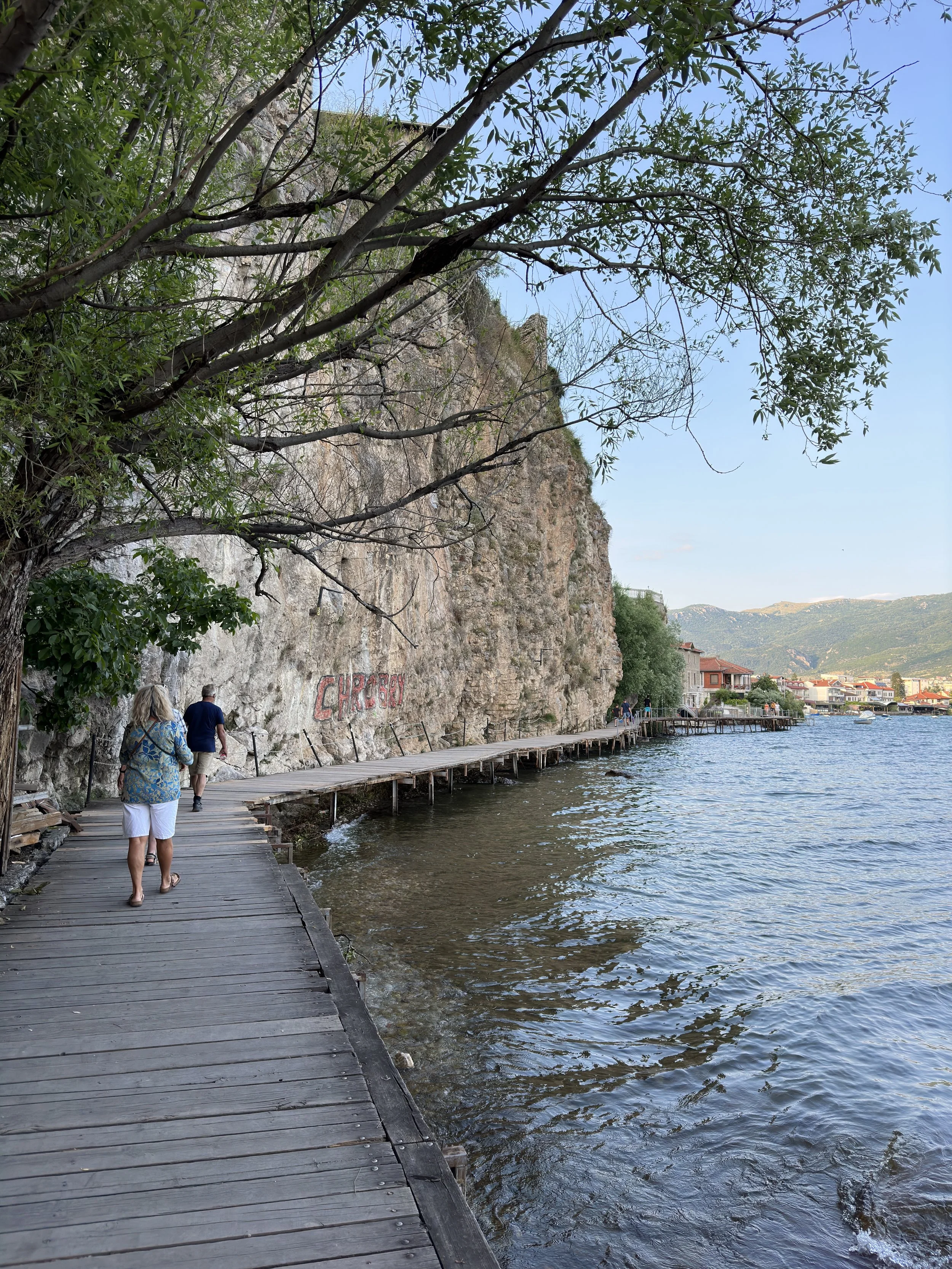 The church is one of Ohrid’s most important landmarks. Eleventh century. Layers of Byzantine frescoes inside. The courtyard offered shade and quiet. This was our final stop. My feet were tired, but the stillness of the place felt like a reward.