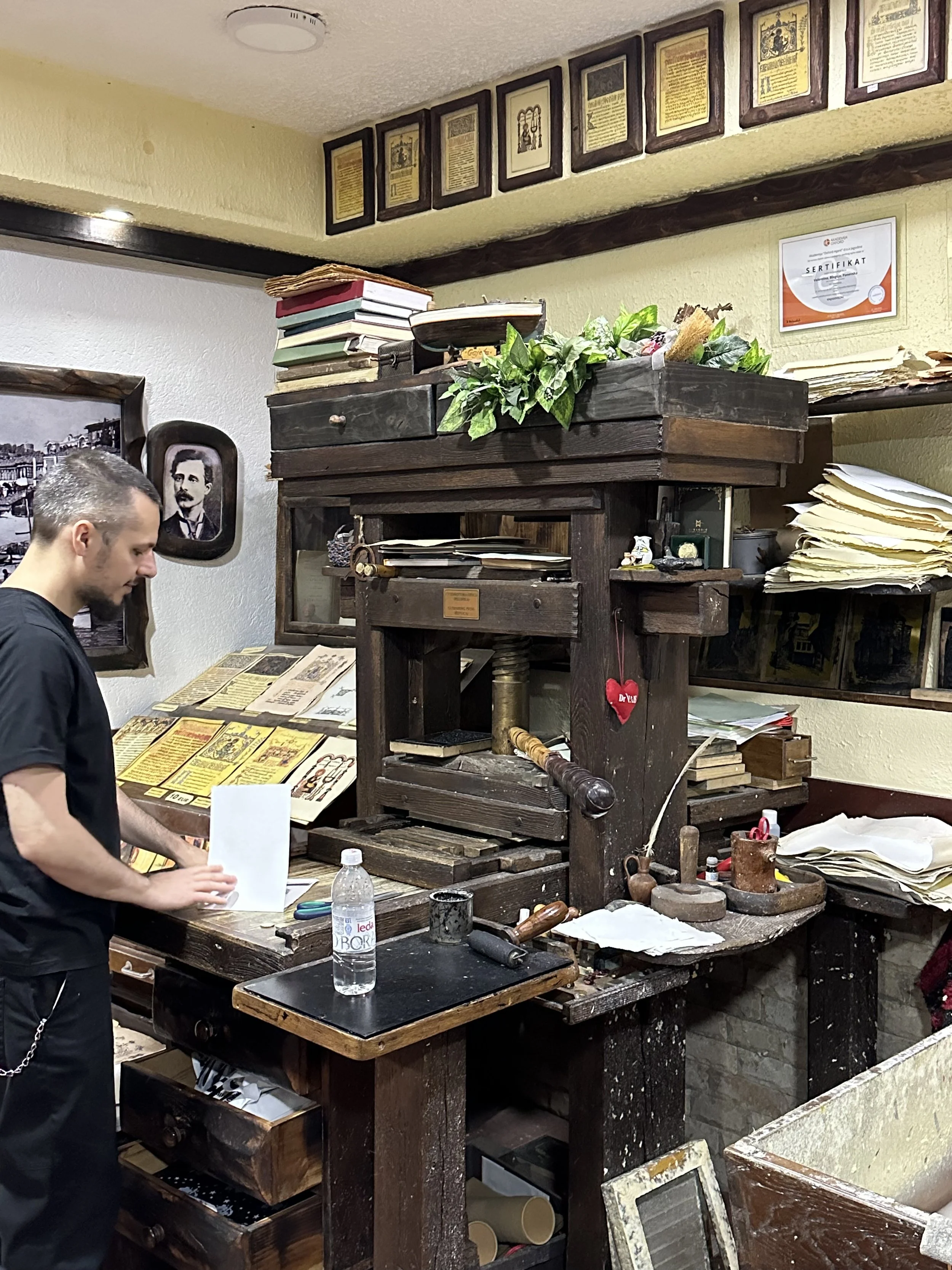 Inside the workshop, everything smelled of pulp and linen fibres. The room held a working replica of the Gutenberg press, one of only two in the world. We watched a quick paper demo. The press thumped. The sheet came out damp and textured. My hands held a faint earthy scent from the pulp. It was a simple moment, but memorable.