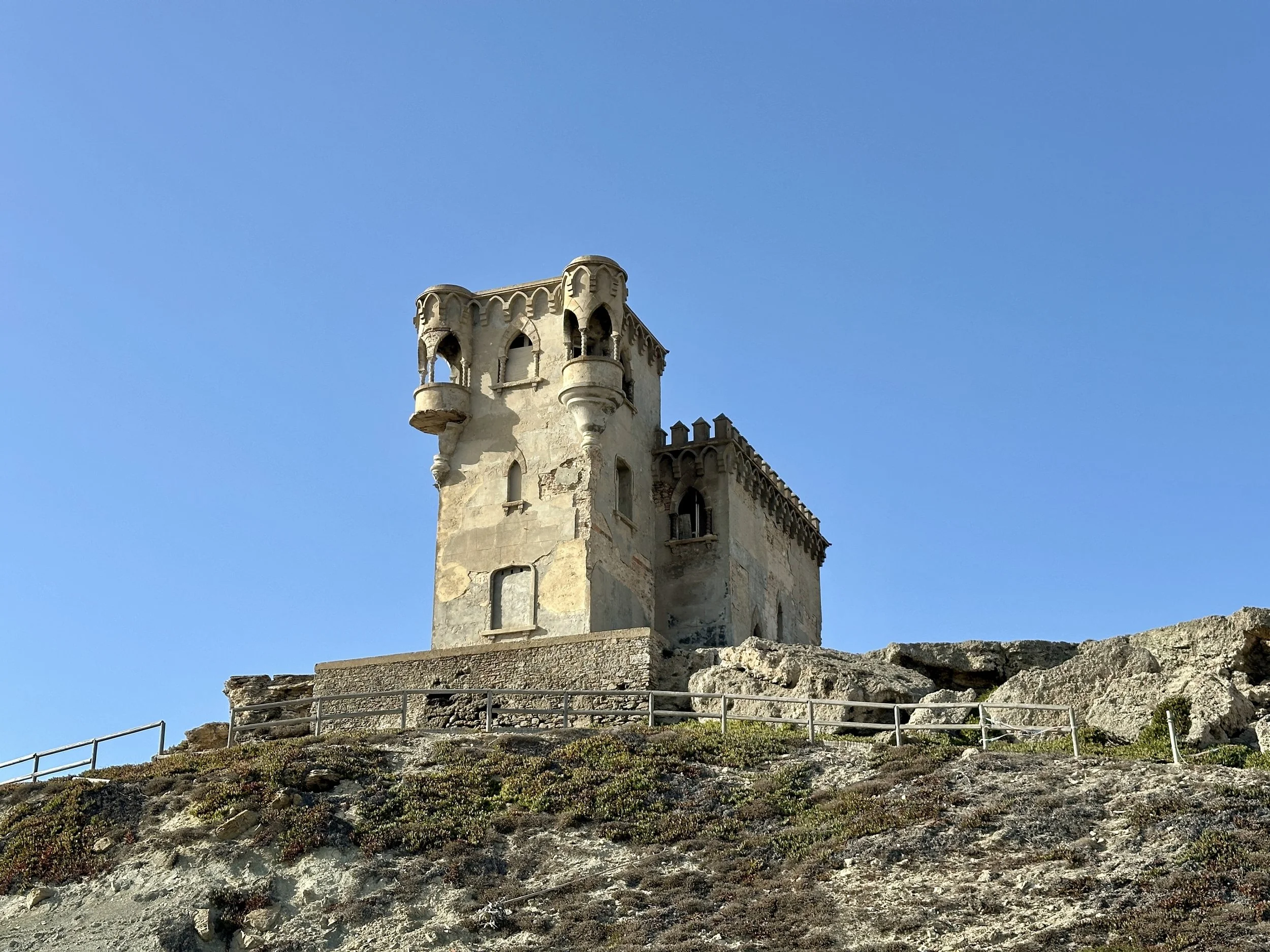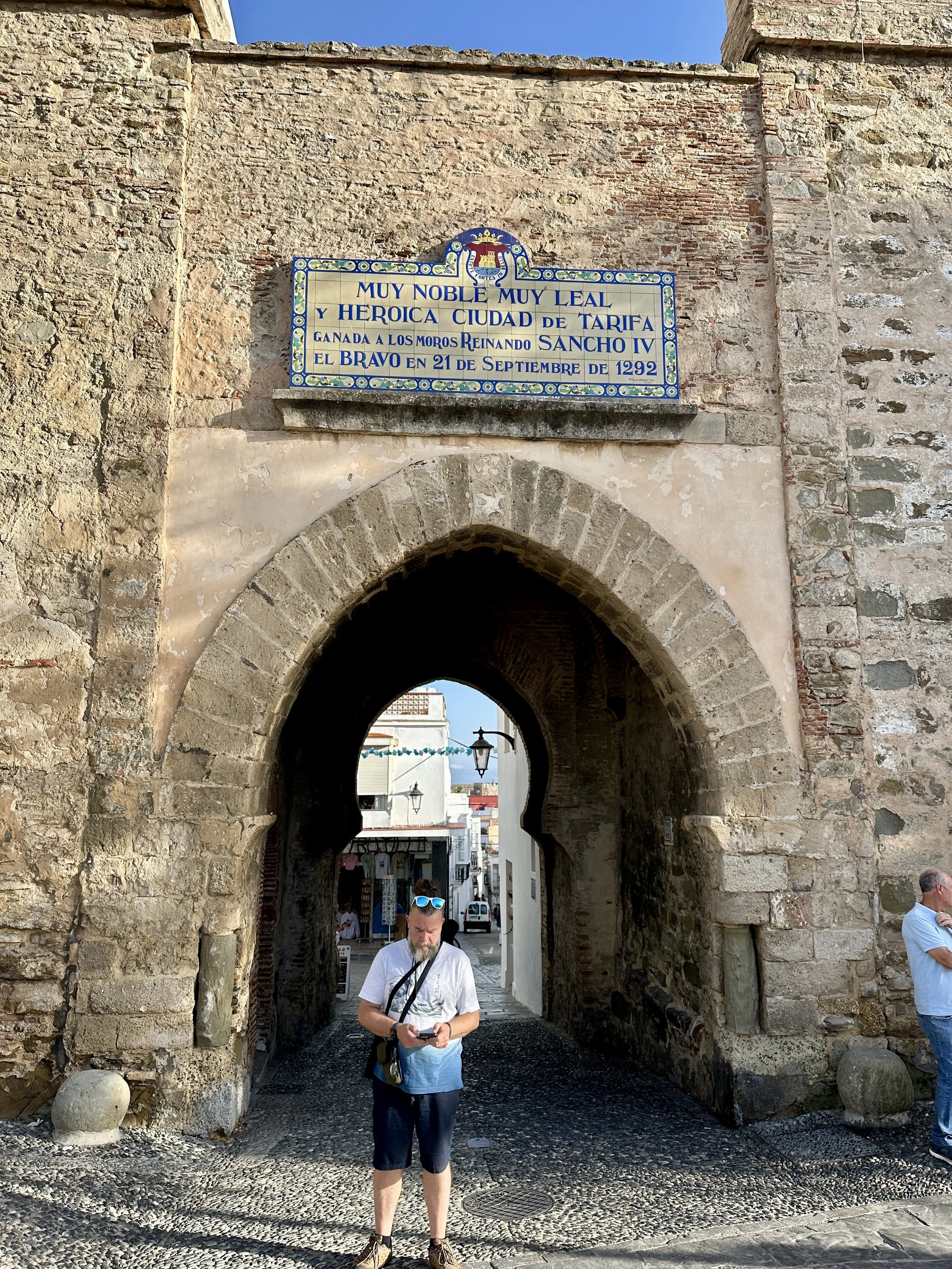 We could not go further up, so we turned back downhill toward the coast, passing the Castillo de Guzmán el Bueno. The fortress was closed, its gates locked for the day, but we lingered at the entrance. It was here in 1294 that Guzmán chose loyalty over family, refusing to surrender Tarifa even when his son was captured, a story that still echoes in Spanish history. Beyond its walls, the sea glimmered like steel.