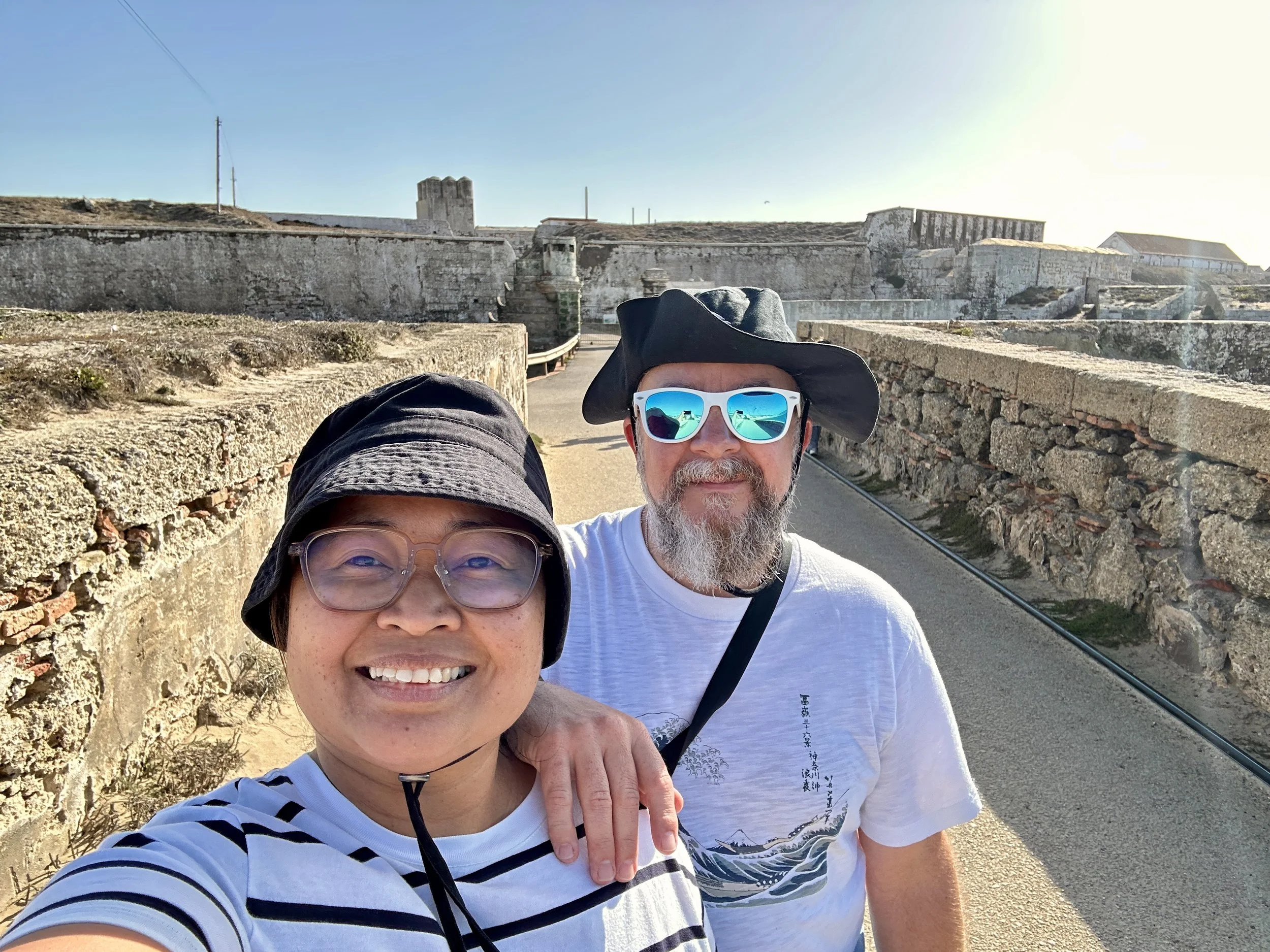 We kept walking toward the end of the peninsula, where the land narrows into a causeway. On one side, the Atlantic crashed wild and grey; on the other, the Mediterranean shimmered blue and calm. We crossed to the gate of Punta de Tarifa, the southernmost point of continental Europe, but found it locked. The old 17th-century fortress on Isla de las Palomas stood behind its wall, silent and closed to visitors.