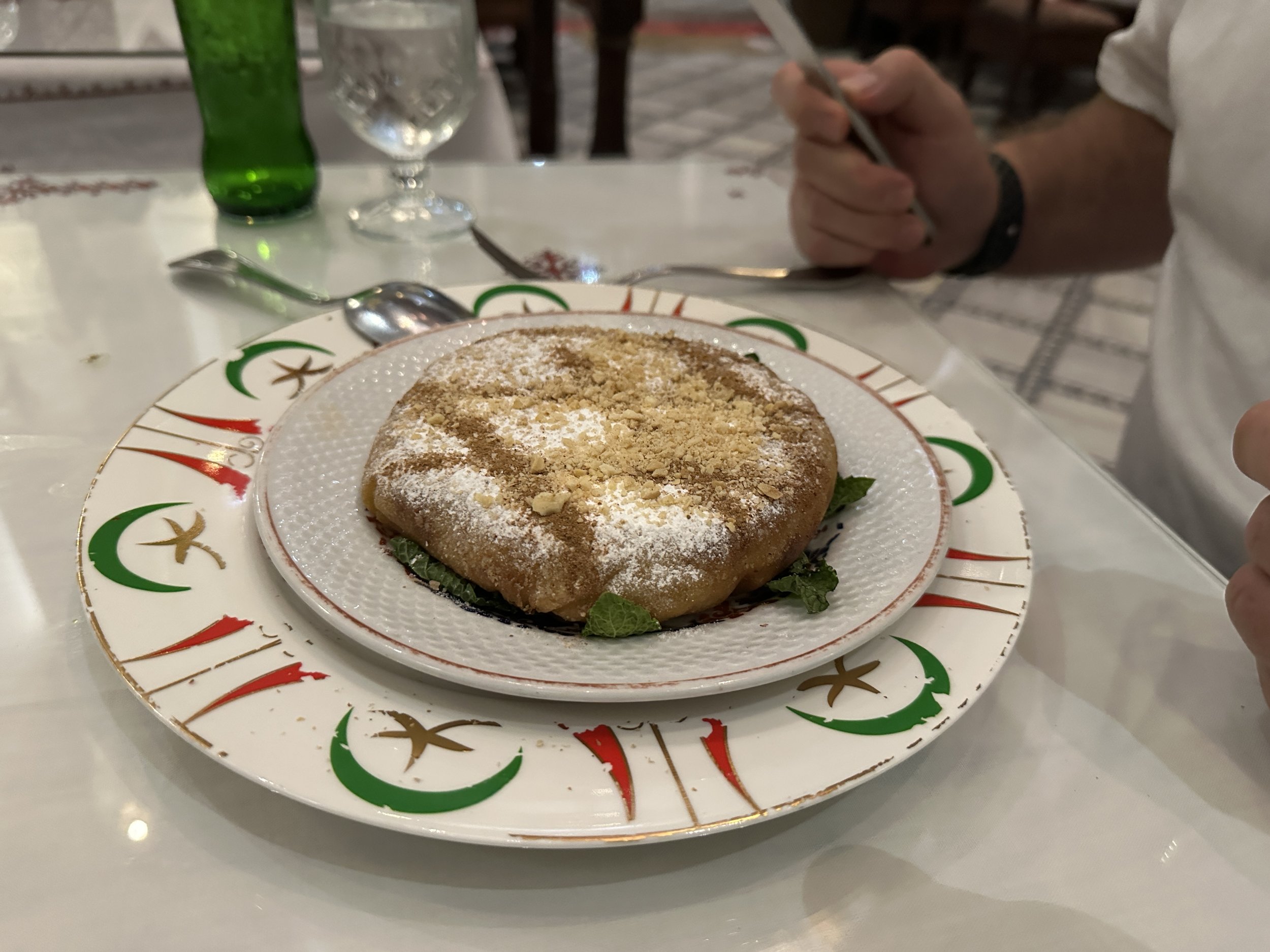 For dessert, we wrapped up with briouats, triangle-shaped pastries filled with honey and nuts. The pastries were golden, crispy, and sticky with honey, the nuts inside adding a satisfying crunch. The perfect sweet ending to a flavour-packed meal.