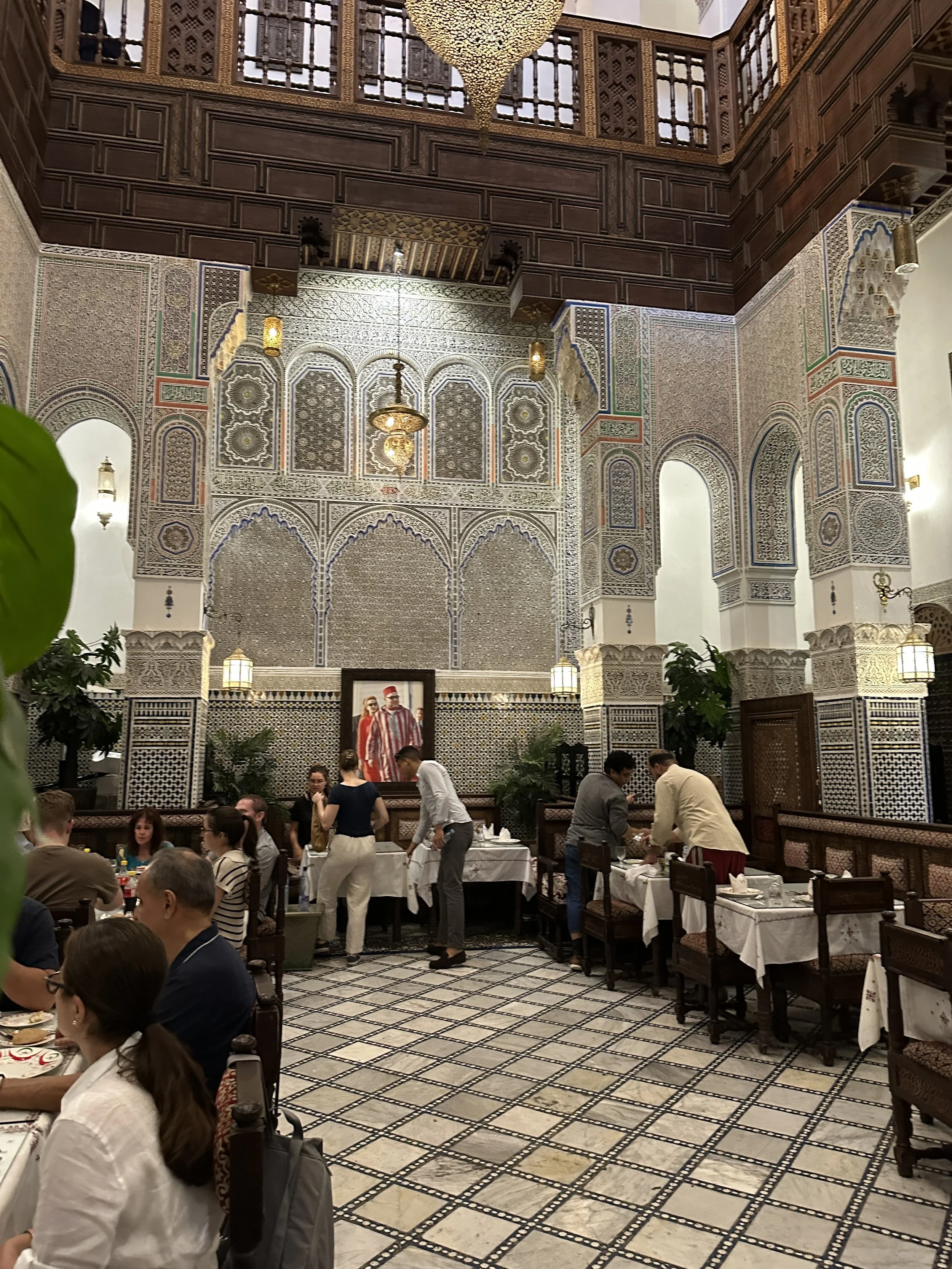 The next day, we found ourselves back in the Medina for another food experience, this time at Ryad Nejjarine, a lovely restaurant tucked away in the heart of Fez el-Bali. You might walk right past the door, but once you step inside, you’re greeted by soft lighting, intricate tilework, and a calm atmosphere that’s a welcome break from the bustle of the streets.