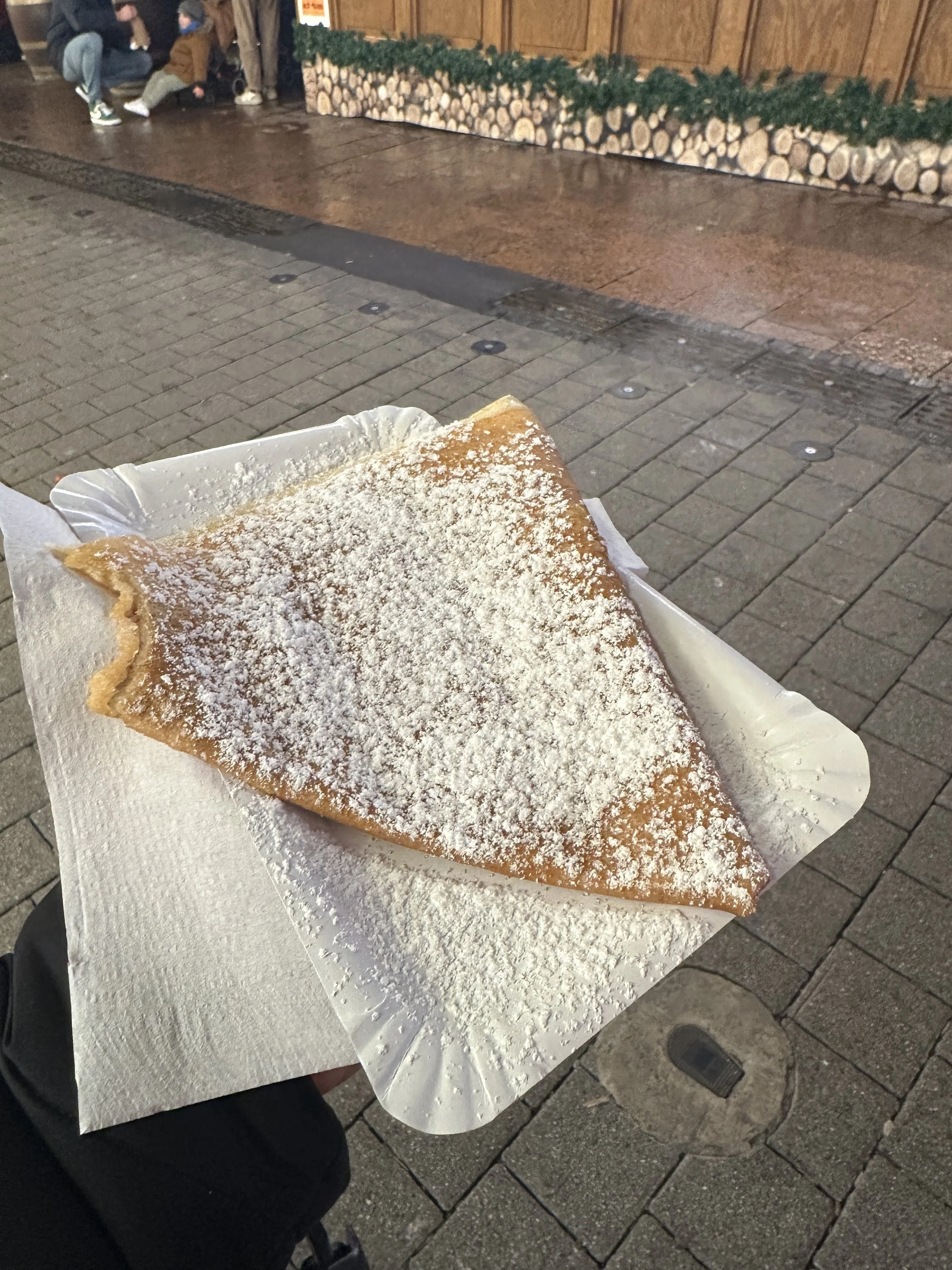 A chocolate crepe called to us next. Warm, gooey, and with lightly crisp edges, it hit the perfect sweet spot after the sausages. The square was lively but not overwhelming, full of people chatting and street performers, making it a perfect spot to pause and enjoy a treat.