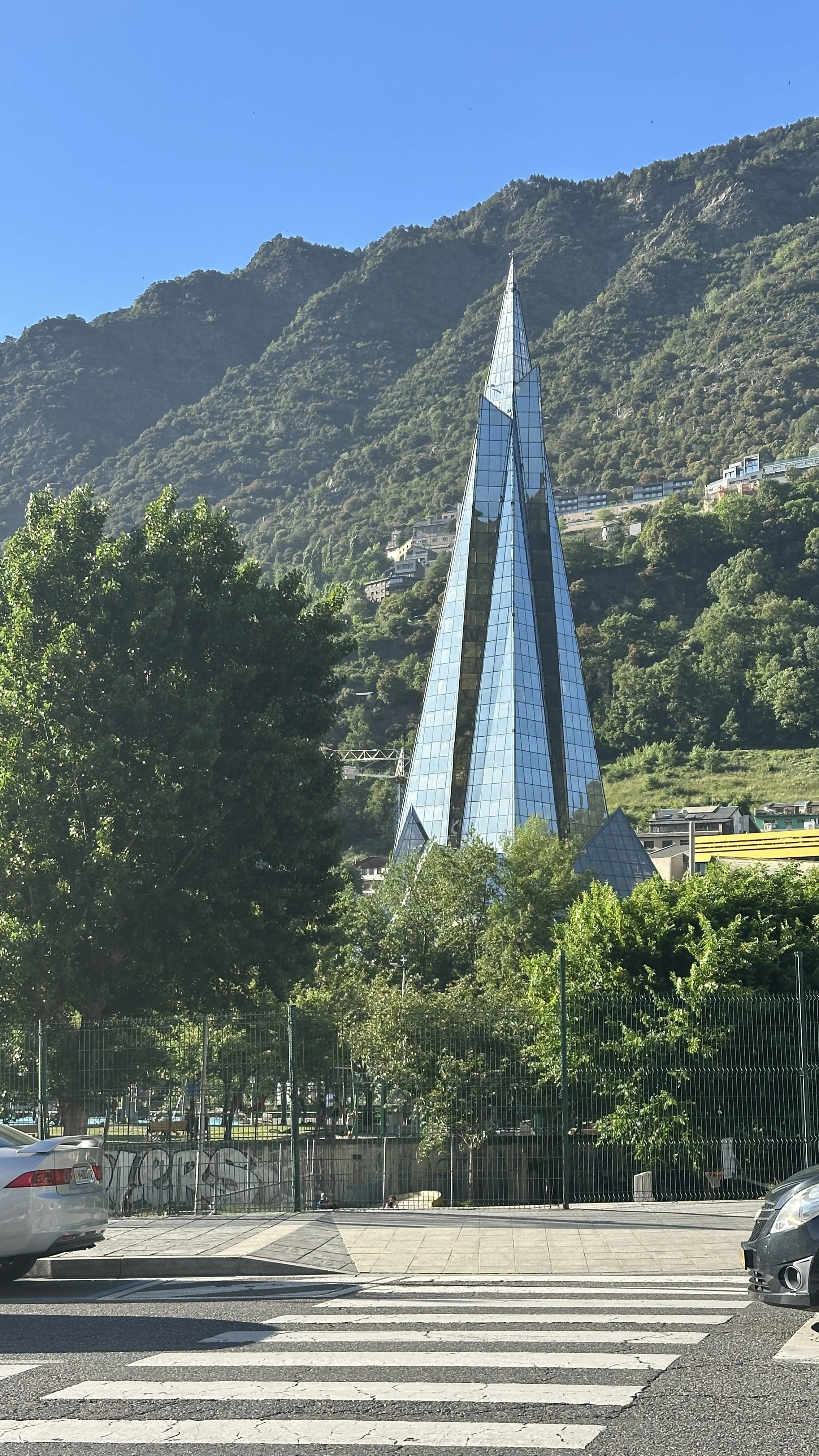 Before heading to Avenue Carlemany, I took a little detour to Caldea Spa. The building’s tower caught my eye, reminding me of London’s Shard with its sleek, glassy design standing tall against the mountain skyline.