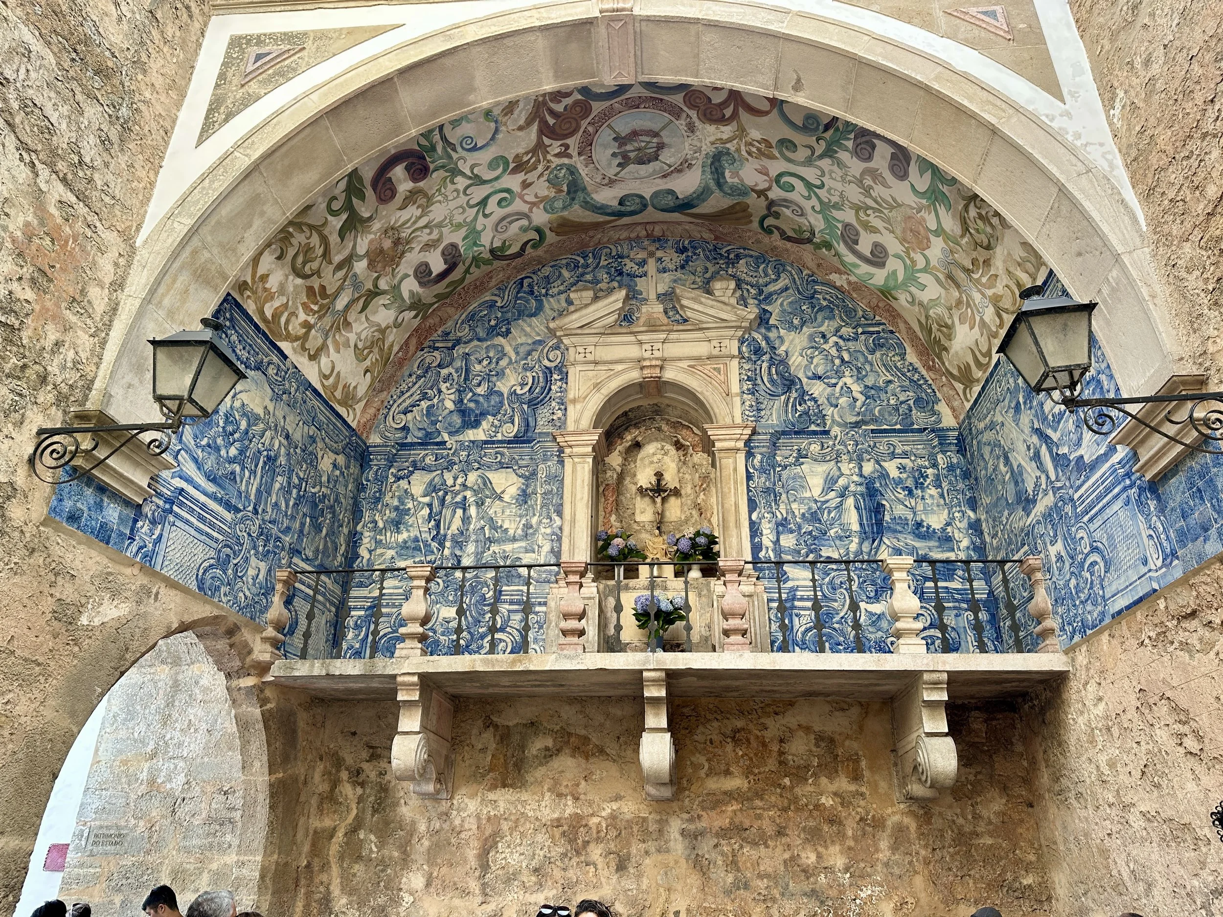 We started our walk at Porta da Vila, the main gateway into the old town. Built in the 18th century, this gate is famous for its Baroque balcony decorated with beautiful azulejos (blue-and-white tiles) that depict the Passion of Christ. It was more than just an entrance – it symbolised both the town’s religious roots and its strategic importance. Back in the day, this was also where announcements were made and travellers were welcomed… or turned away.