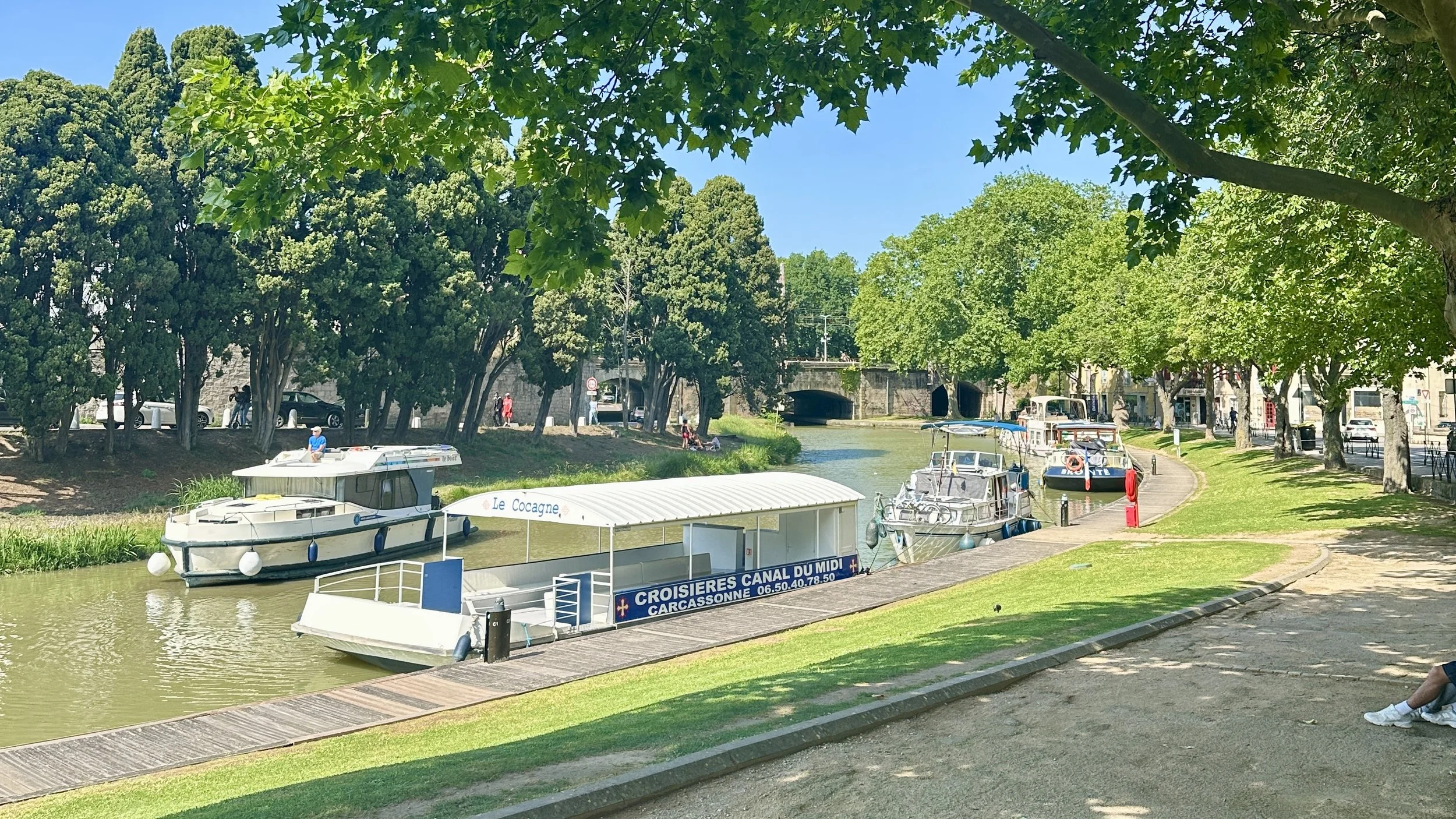 The moment you step off the train, you’re right by the beautiful Canal du Midi, which runs just outside the station. It’s a calm, scenic spot to take a deep breath, watch the boats glide by, and soak in the gentle sounds of water before heading into the buzz of the medieval city.