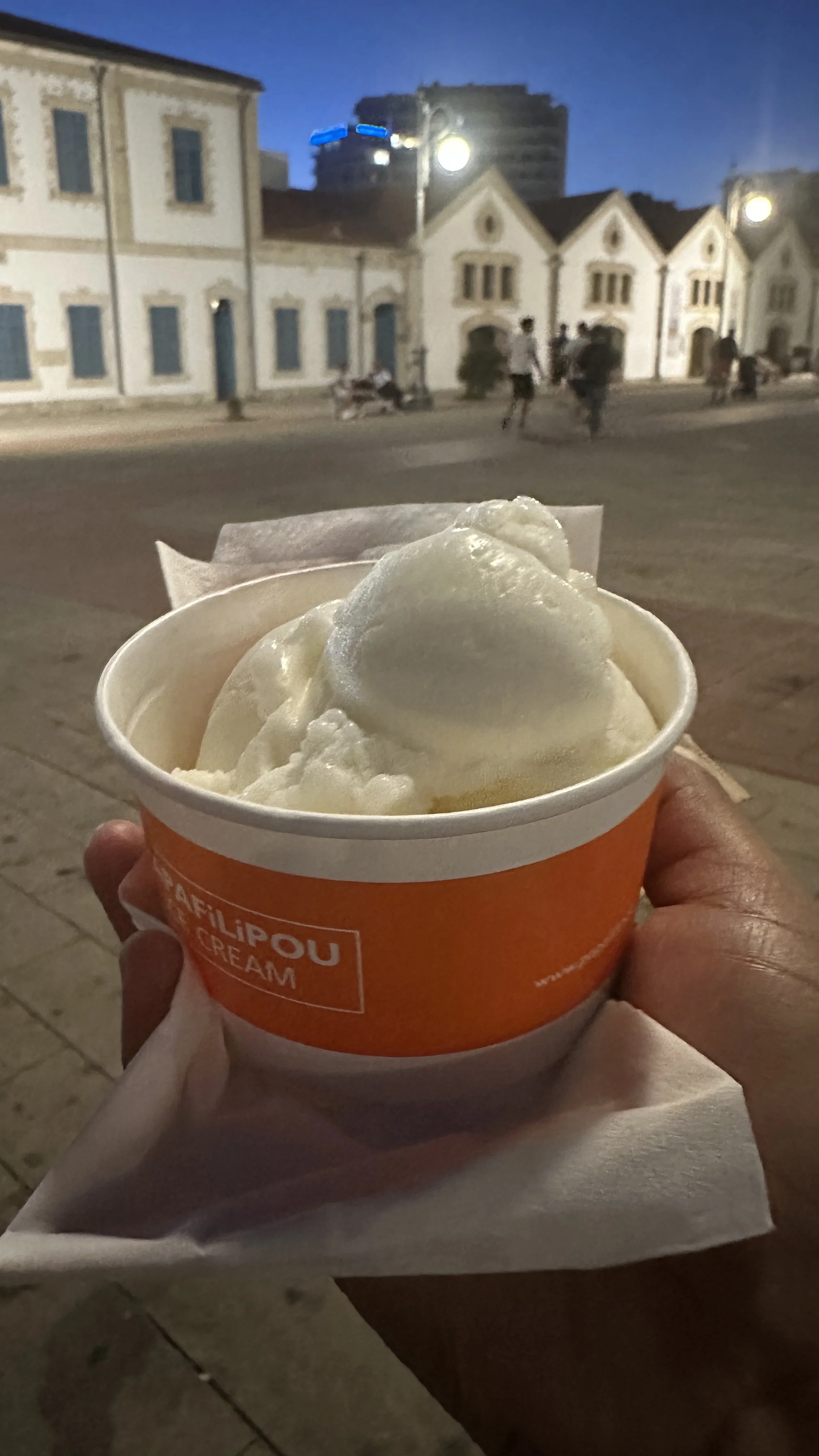 While wandering the beachfront, we treated ourselves to lemon sorbet from Papa Filipou. Tart, icy, and just the right zing to cool us off while we took in the sea views. Sometimes the simplest treats make the best memories.