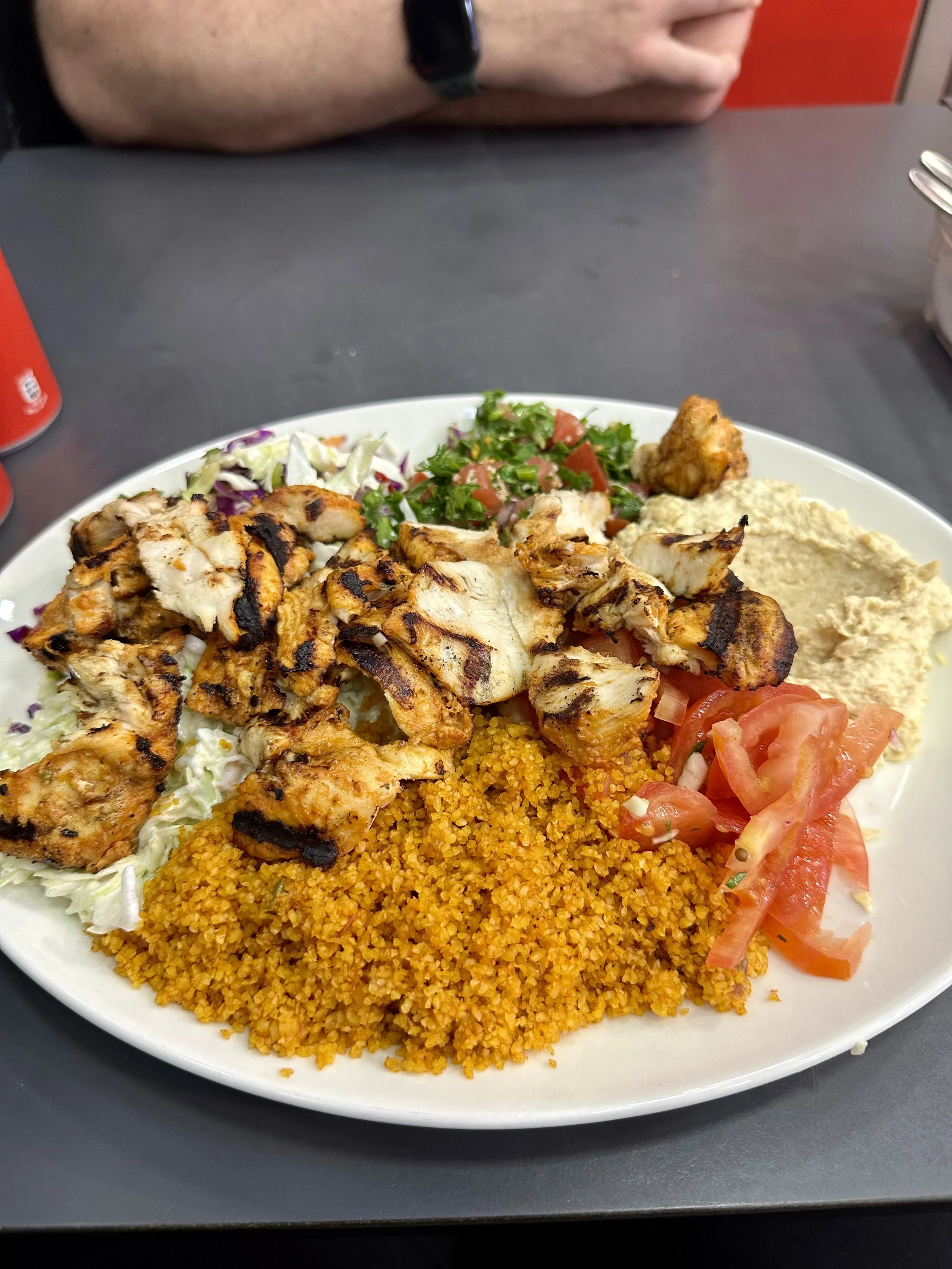 We also tried Kebab Ji, a Lebanese spot that immediately caught our eye. Both of us went for the chicken kebab with all the trimmings. The plates were enormous, piled high with tender chicken, hummus, tabbouleh, fresh salad and tomatoes, but I somehow managed to demolish mine entirely. Definitely a feast that satisfied every craving.